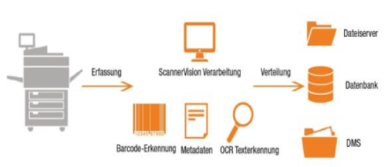SannerVision es una solución para automatizar los flujos de trabajo de documentos, que captura, procesa y almacena documentos escaneados, así como documentos generados por otras aplicaciones. Cada documento que va a ScannerVision pasará por estas 3 funciones principales.